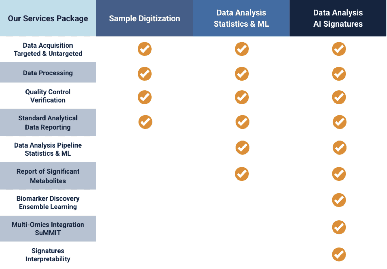 By working directly from raw data and delivering fully AI-ready datasets, we generate quantitative metabolomic disease signatures designed for clinical translation, advanced analytics, and real-world impact.