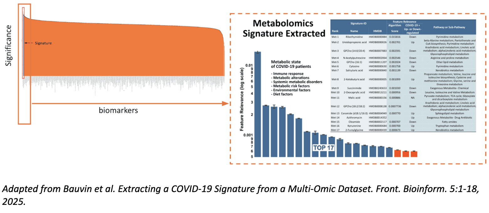 We collaborate with leaders in both AI and metabolomics to generate quantitative and actionable data that is AI-friendly, integrated into their AI pipelines. Major projects include omics signatures for COVID-19 and cancer.